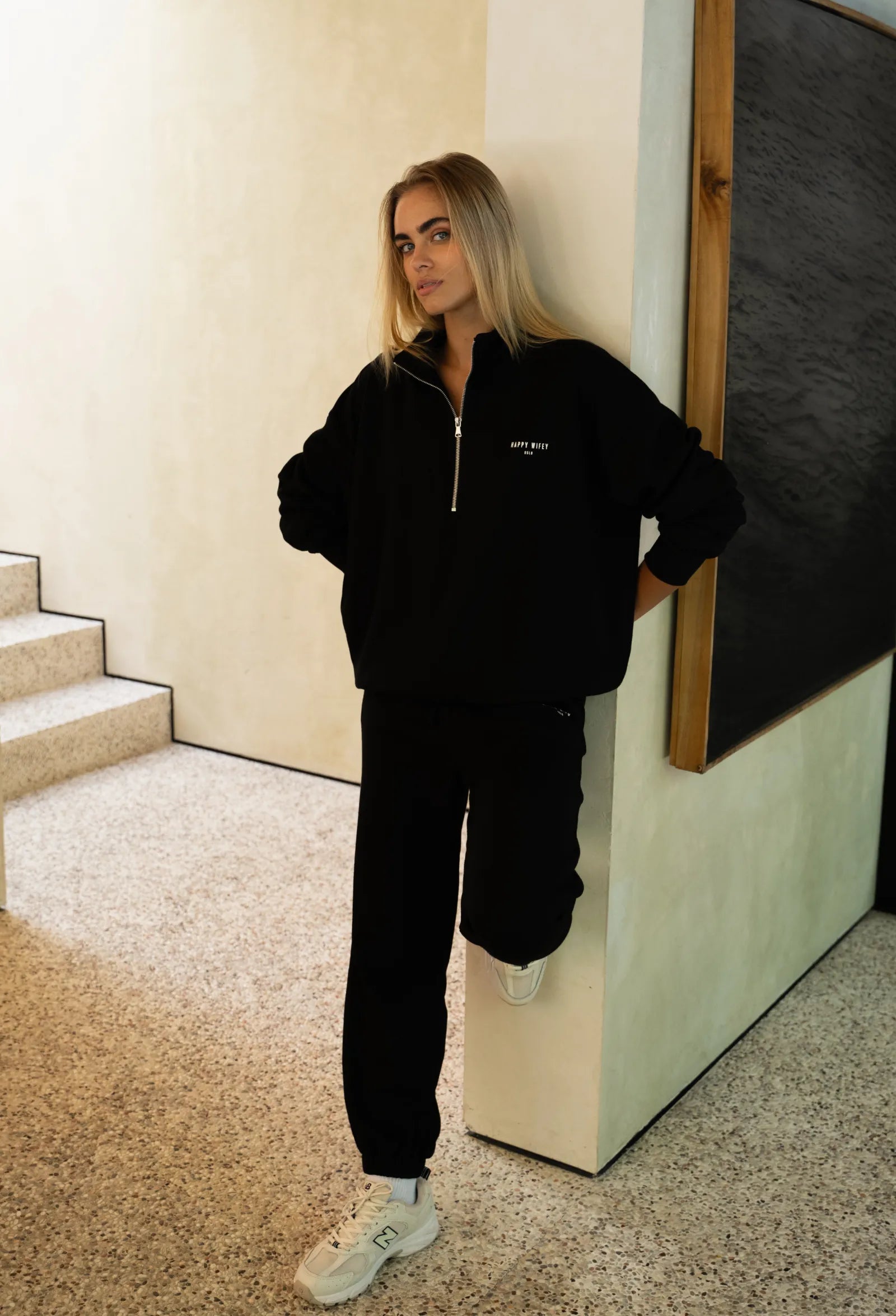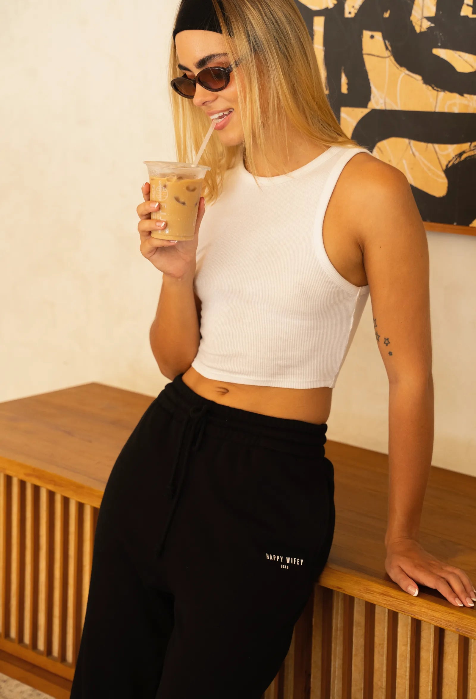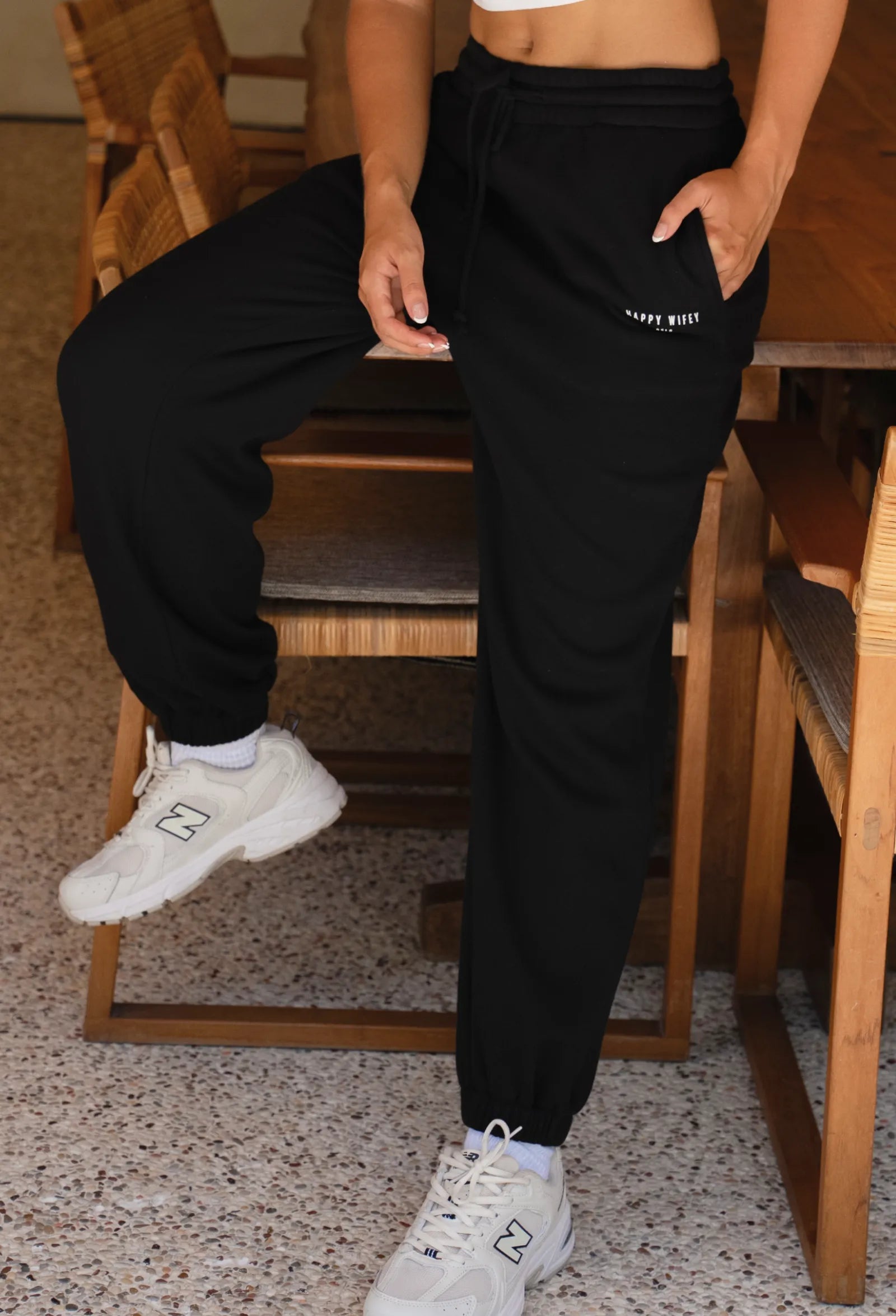You’ll love the nice details such as the drawstring waistband, gathered ankle cuffs, and minimalistic Happy Wifey Oslo logo, giving the sweatshirt a nice and clean look.