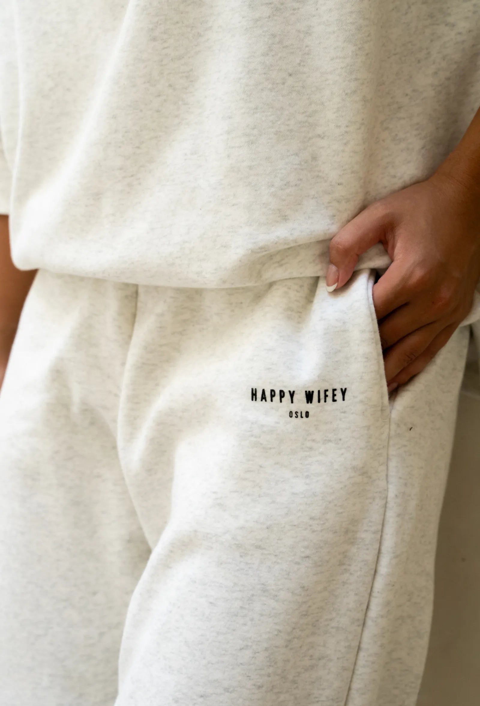 You’ll love the nice details such as the drawstring waistband, gathered ankle cuffs, and minimalistic Happy Wifey Oslo logo, giving the sweatshirt a nice and clean look.