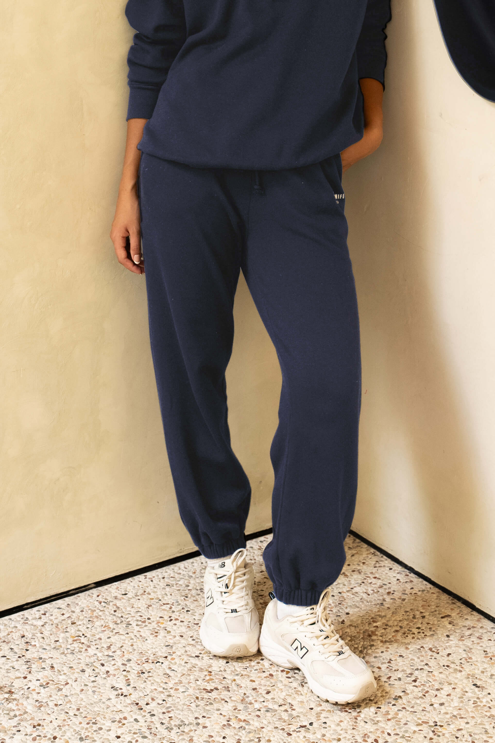 You’ll love the nice details such as the drawstring waistband, gathered ankle cuffs, and minimalistic Happy Wifey Oslo logo, giving the sweatshirt a nice and clean look.